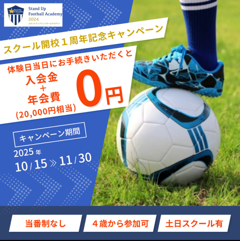 【スクール開校1周年記念特別入会キャンペーン/兵庫県神戸市の幼児から小学生対象のサッカースクール】