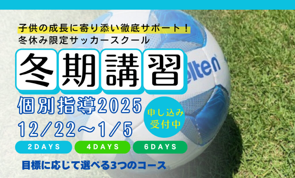 ▼冬休みの期間を利用して完全個別指導の元、様々なニーズやご要望に応じて指導をさせていただきます。(サッカーだけでなく、走るのが早くなりたいなどもOK)